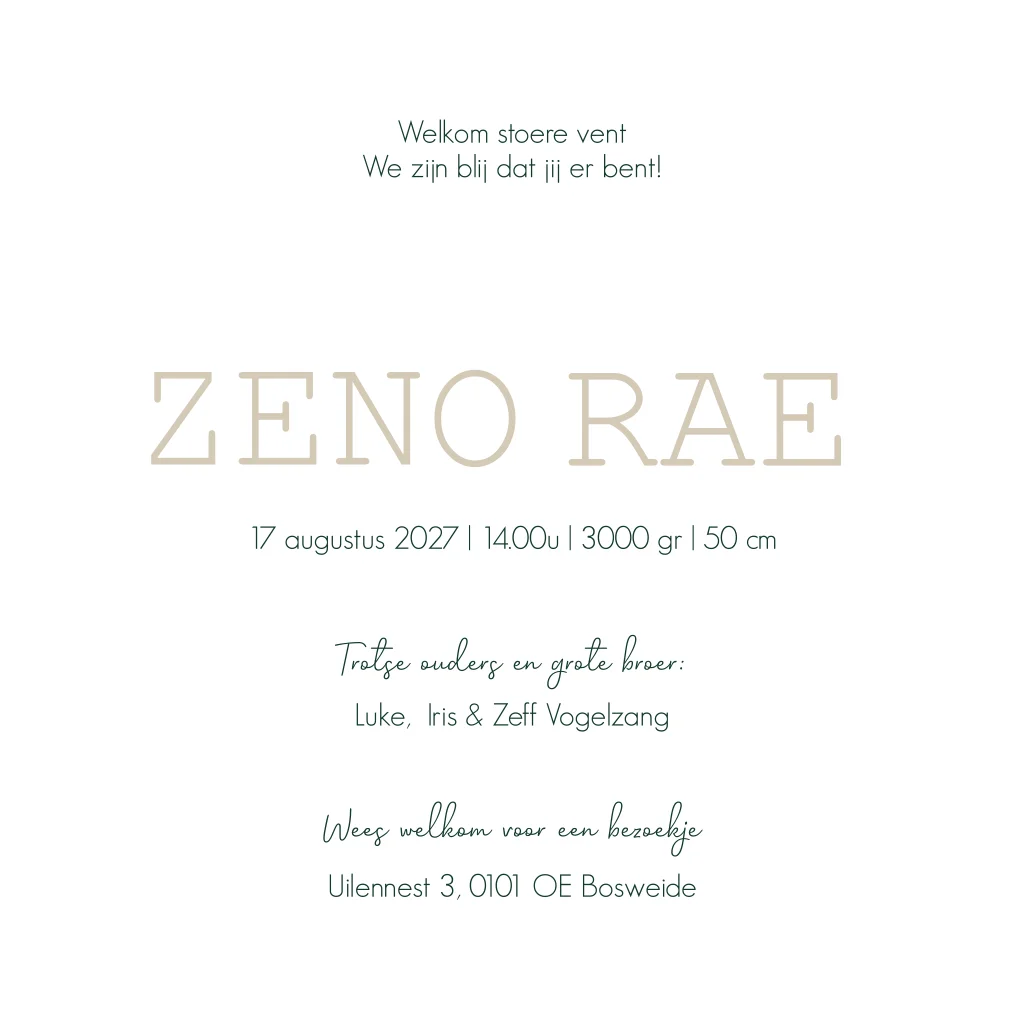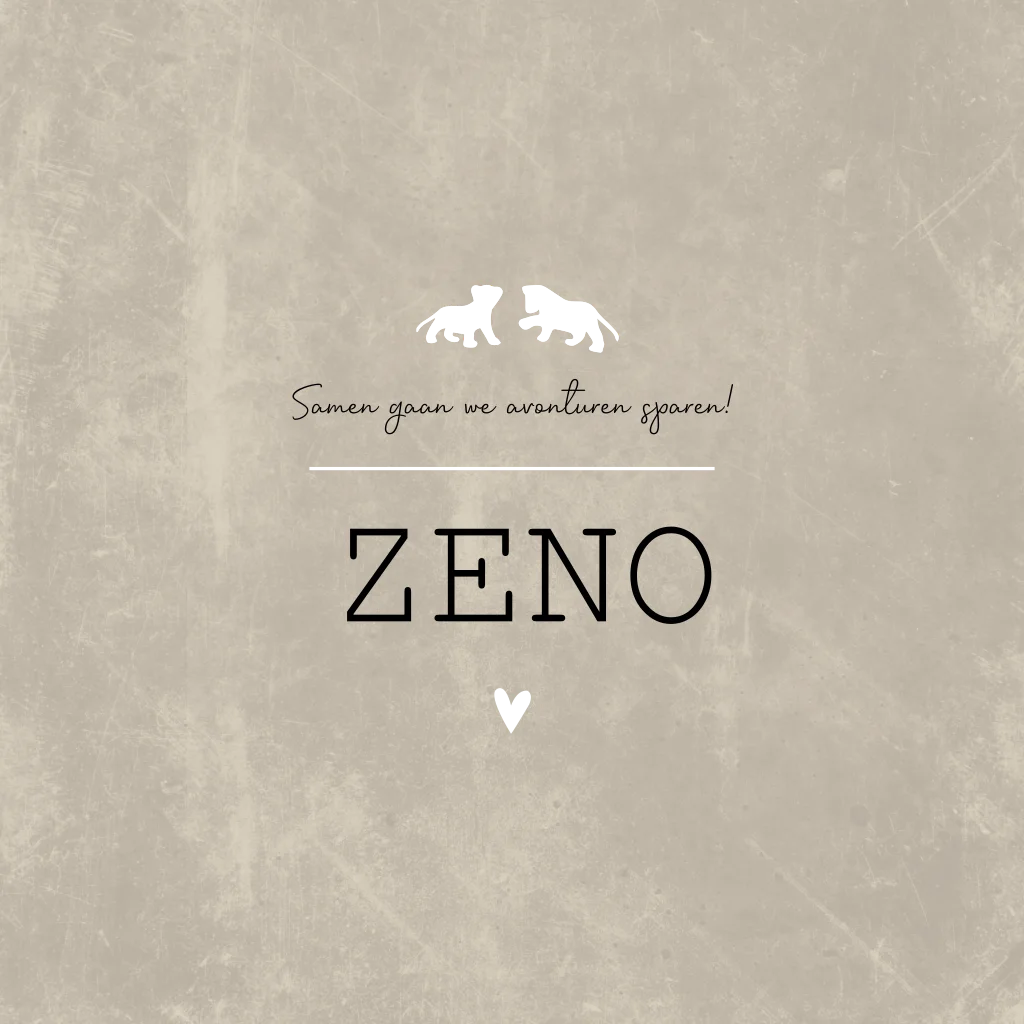 Neutraal beige/ crème geboortekaartje in suède look. De gouden welpjes/ leeuwtjes van geboortekaartje Zeno geven het kaartje een stoere touch. Laat ze bedrukken met goufdolie voor een extra mooi effect,