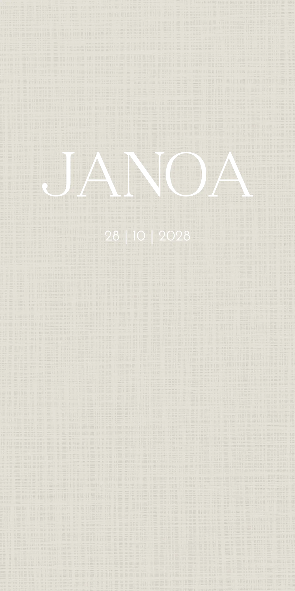 Een neutraal beige geboortekaartje met linnenlook als achtergrond. De naam is in goudfolie gezet. Geboortekaartje Janoa is een strak kaartje. Tip! Maak het kaartje extra leuk door een fotolabel toe te voegen en deze te bevestigen door middel van een paperclip.