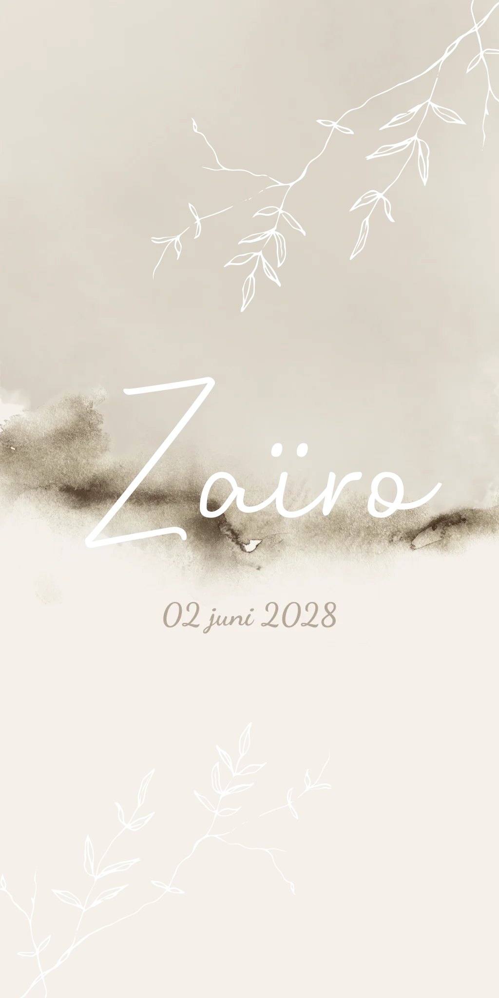 Geboortekaartje Beige Waterverf Takjes