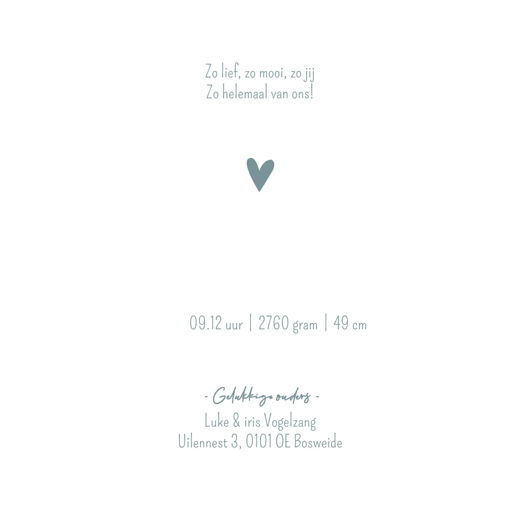 Blauw gewolkt geboortekaartje met stipjes en hartje. Geboortekaartje Jaap is te bestellen met koperfolie. Liever goudfolie of een ander kleur? Je past het kaartje eenvoudig aan in de editor.