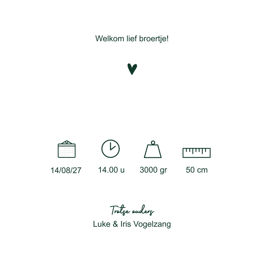 Geboortekaartje donkergroen goud hartjes
