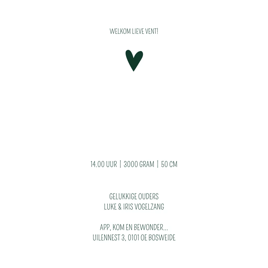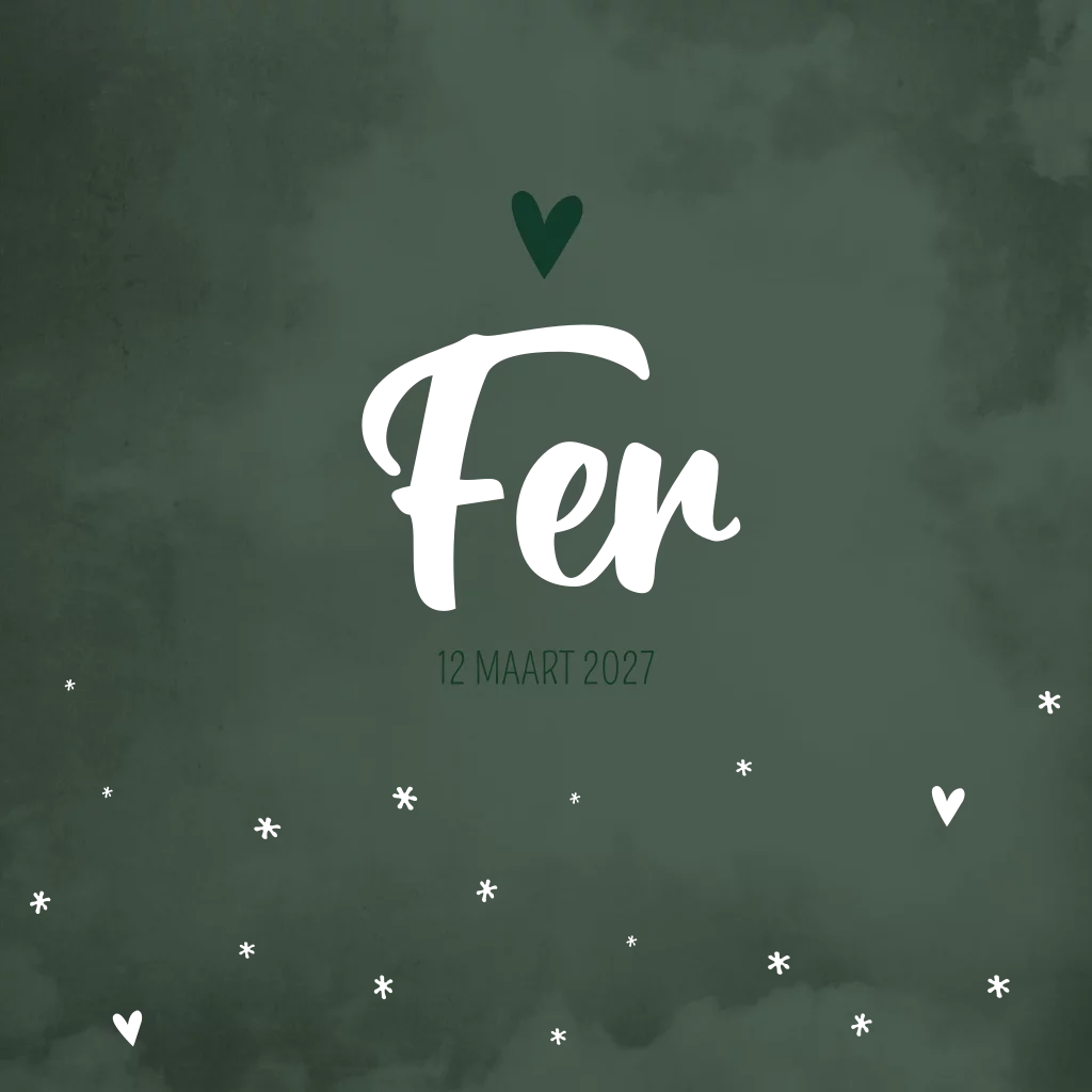 Geboortekaartje Donkergroen jongens hartjes sterretjes