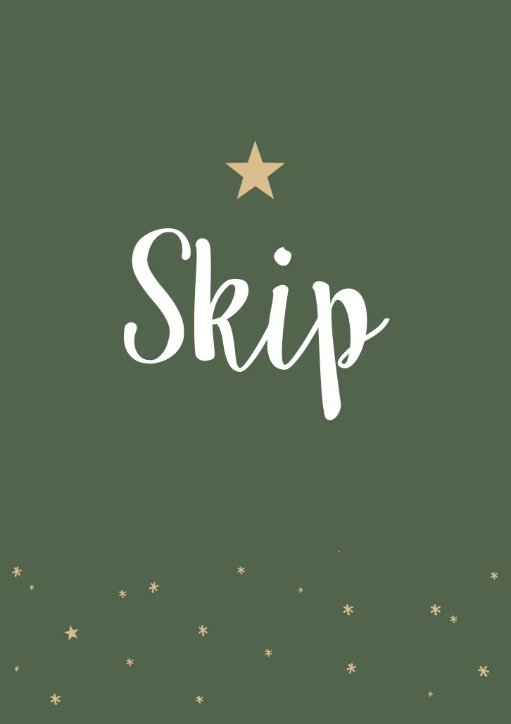 Geboortekaartje Skip is een stoer geboortekaartje in een legergroene kleur. Hij heeft leuke sterretjes wat hem helemaal afmaakt. Maak het kaartje helemaal naar jouw smaak in de editor.