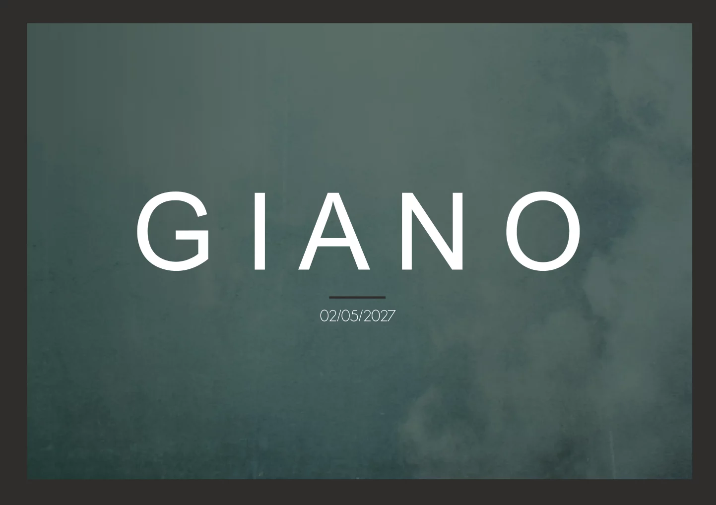 Stoere donkergroene gewolkte geboortekaart voor een jongen met zwarte omlijsting. De naam staat groot in het midden gecentreerd in strakke letters. Wil je kaartje Giano liever aanpassen qua kleur, opmaak, lettertype of formaat? Je doet het binnen enkele minuten in onze editor!