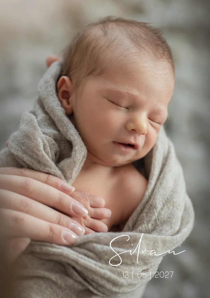 Prachtige fotokaart Silvan met een babyfoto van jouw kindje! Je kunt het kaartje helemaal zelf aanpassen naar jouw wensen. De naam is nu in goudfolie gezet maar deze kun je ook omzetten naar een andere kleur of koperfolie bijvoorbeeld. Let er wel op, de foto maakt de kaart! Dus maak een paar verschillende foto's en bekijk welke foto het mooiste uitkomt op de kaart. Wil je hulp bij het bewerken van je foto? Stuur ons een mailtje met de foto, dan passen we de foto voor je aan.