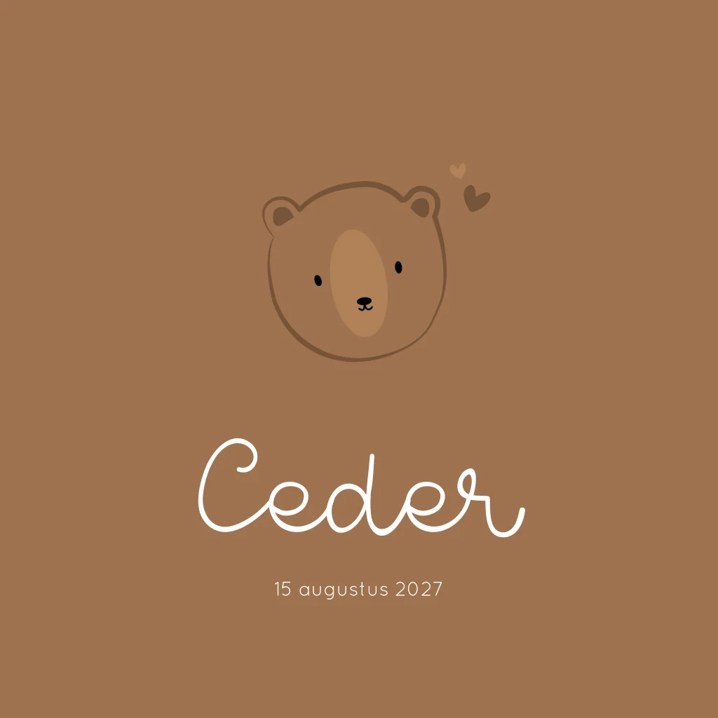 Een lief geboortekaartje met een illustratie van een beertje. Perfect voor de herfst. Op kaartje Ceder is gebruik gemaakt van bruine tinten om het neutraal te houden. Een perfecte combi tussen lief en stoer!