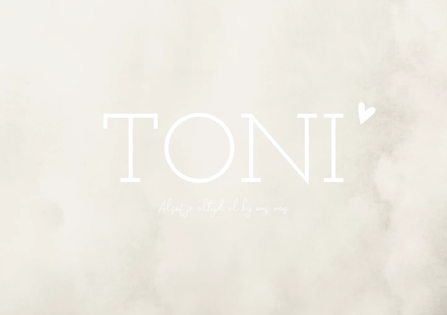 Prachtige babykaart met beige/ crème gewolkte achtergrond en koperfolie strakke stoere letters wat de kaart tegelijkertijd ook heel stijlvol en tijdloos maakt. Kaart Toni is ook prachtig te combineren met een fotolabel. Dit kun je allemaal zelf samenstellen in onze editor. Heb je de matchende sluitzegel gezien? Zo maak je een compleet setje, prachtig toch?!