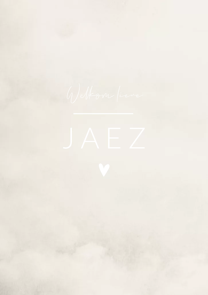 Beige crème gewolkt geboortekaartje. Geboortekaartje Jaez is een neutraal en strak/modern geboortekaartje. Maak het kaartje extra bijzonder door het te laten bedrukken met goudfolie.