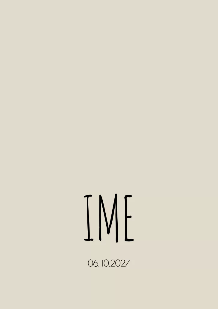Een stoer beige geboortekaartje met zwarte letters. Kaartje Ime is extra mooi als je een label toevoegt met een foto van de kleine.
