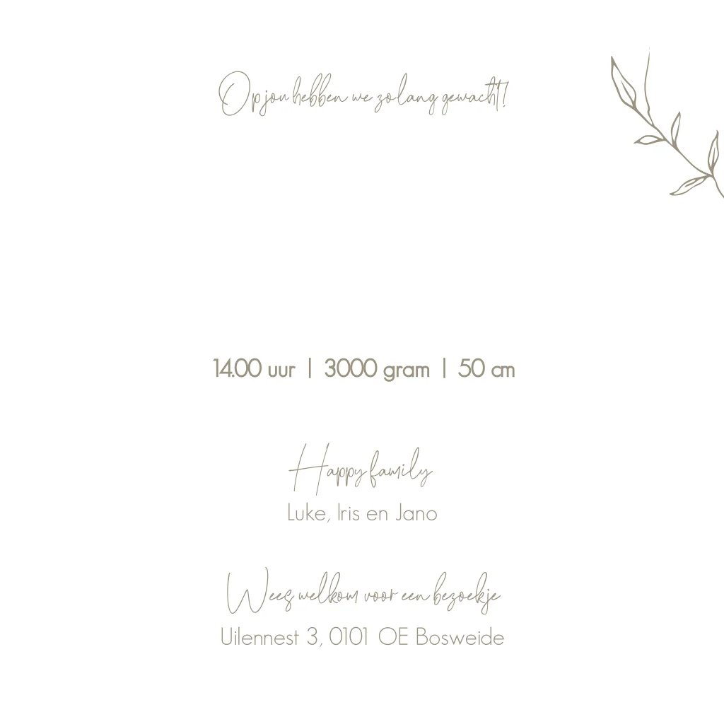 Geboortekaartje jongen beige takjes botanisch