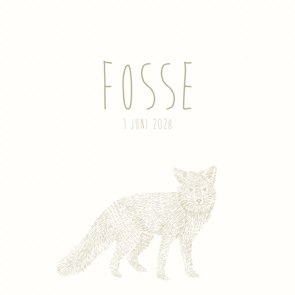 Een simpel beige kaartje met een illustratie van een vos erop. Is de vos op het kaartje Fosse niet helemaal jouw smaak? In onze beeldbank vind je duizenden andere leuke illustraties.