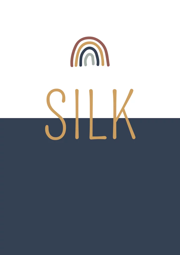 Een stoer en leuk geboortekaartje met een wit en blauw vlak. Op het kaartje staat de naam in een okergele kleur. Op kaartje Silk staat ook een regenboogje. Wil je het kaartje graag aanpassen? Neem dan een kijkje in onze editor voor alle opties.