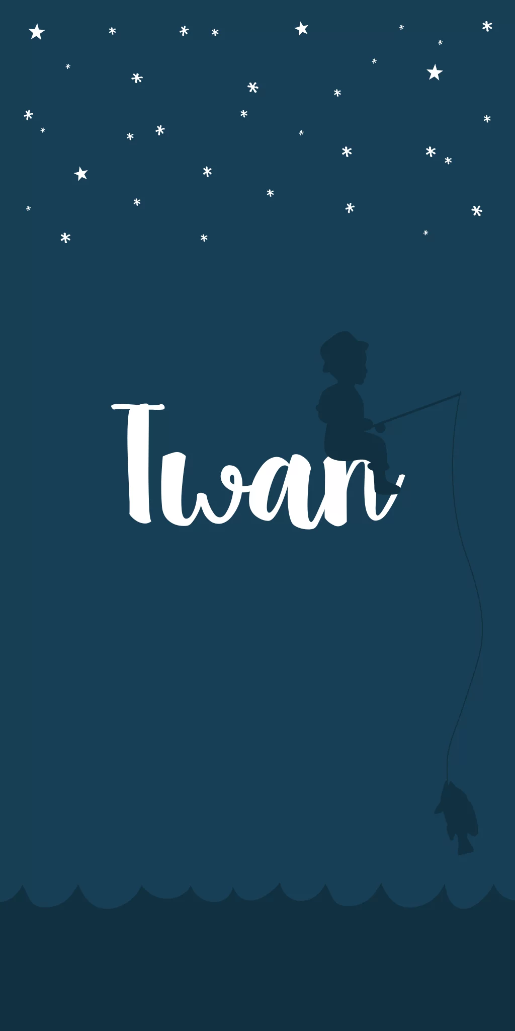 Een donkerblauw geboortekaartje met een illustratie van een vissend jongetje. Het jongetje is speels op de naam geplaatst. Verder zie je golven van de zee/het water en een sterrenhemel.