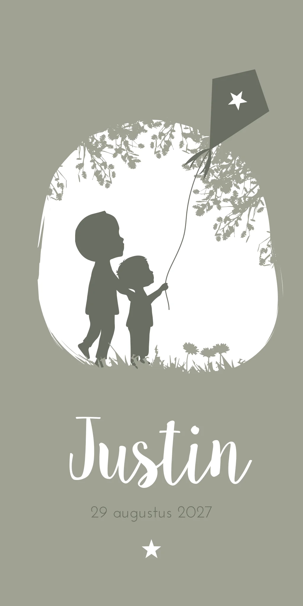 Een ontzettend lief kaartje voor ieder nieuw wonder! Kaartje Justin is een grijs-groen kaartje met een illustratie van twee broertjes die spelen met een vlieger. Wil je liever een andere illustratie op de kaart? Neem dan een kijkje in onze editor voor alle opties. Mis je iets? Neem dan gerust contact met ons op!