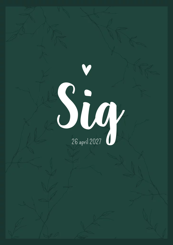 Modern geboortekaartje Sig voor een jongen met botanische takjes en letters in goudfolie. Alle kleuren zijn aanpasbaar, zo ook de opmaak en de afbeeldingen.
