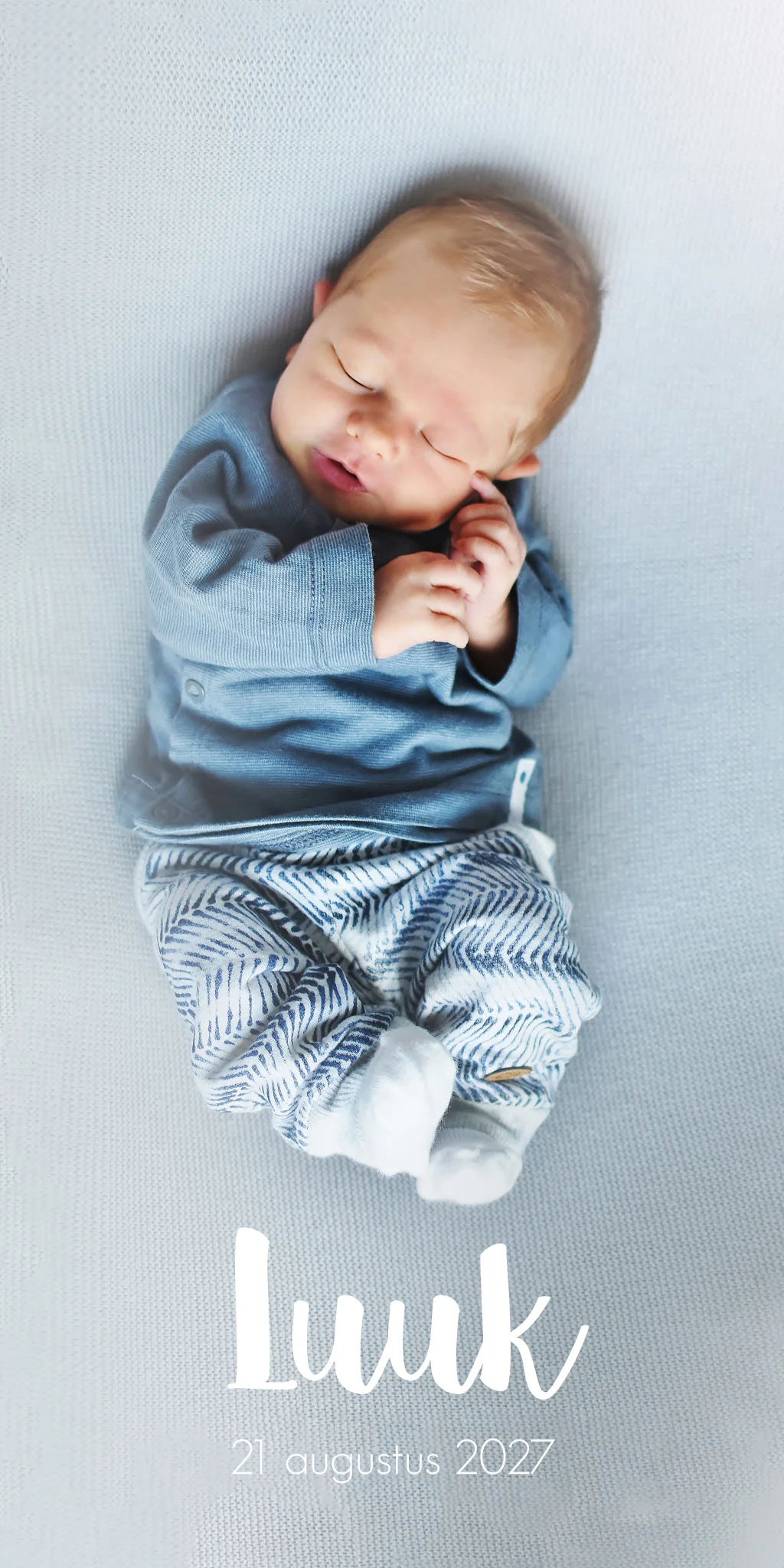 Een mooi simpel fotokaartje. Op kaartje Luuk kan je op voorzijde een prachtige foto plaatsen van jouw kleintje. Match op de achterzijde de kleur van de naam met de foto, dan heb je een prachtig, tijdloos ontwerp!