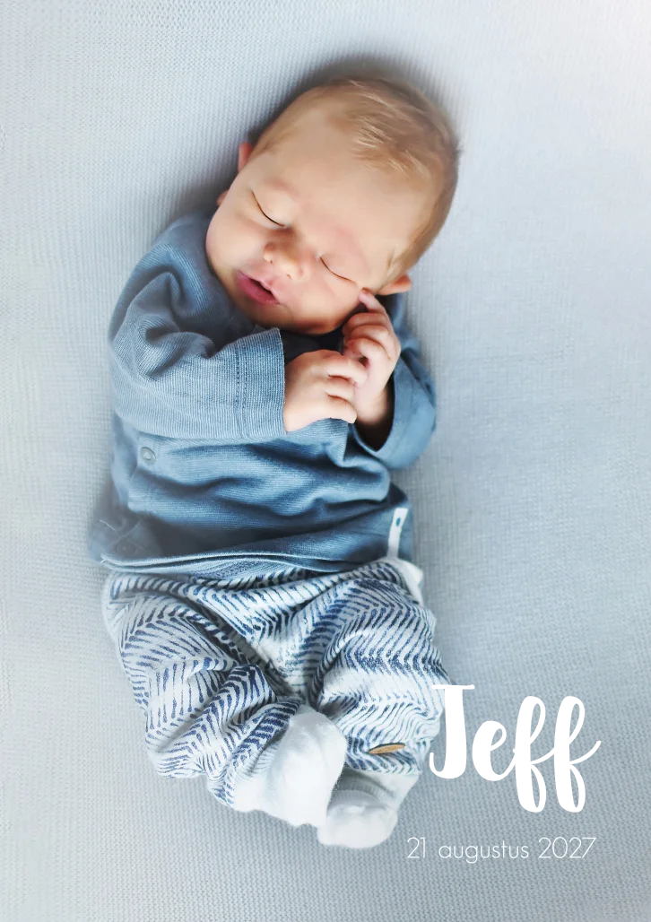Een mooi simpel fotokaartje. Op kaartje Jeff kan je op voorzijde een prachtige foto plaatsen van jouw kleintje. Match op de achterzijde de kleur van de naam met de foto, dan heb je een prachtig, tijdloos ontwerp!