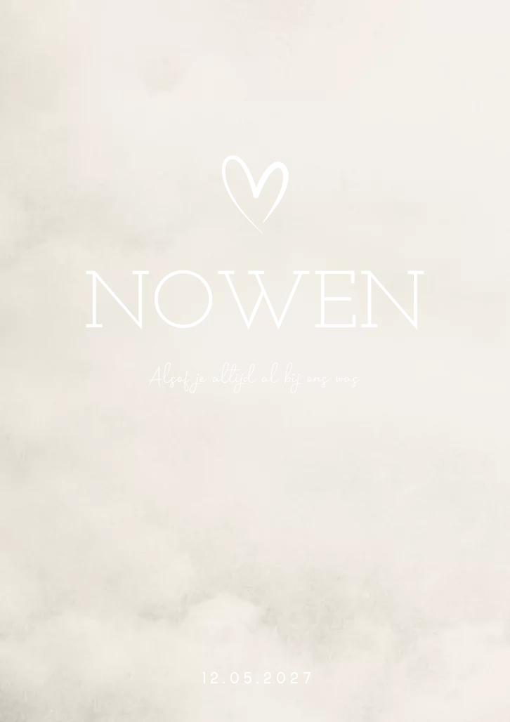 Prachtige babykaart met beige/ crème gewolkte achtergrond en koperfolie strakke stoere letters wat de kaart tegelijkertijd ook heel stijlvol en tijdloos maakt. Kaart Nowen Rae is ook prachtig te combineren met een fotolabel. Dit kun je allemaal zelf samenstellen in onze editor. Heb je de matchende sluitzegel gezien? Zo maak je een compleet setje, prachtig toch?!