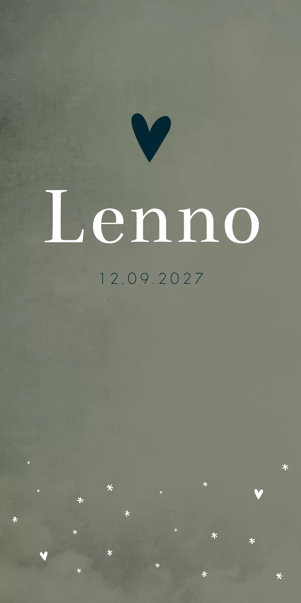 Een gewolkt geboortekaartje in een donkergroene kleur. Kaartje Lenno is een stoer en hip geboortekaartje die nog mooier wordt wanneer je kiest voor goudfolie voor de naam en hartjes/sterretjes.