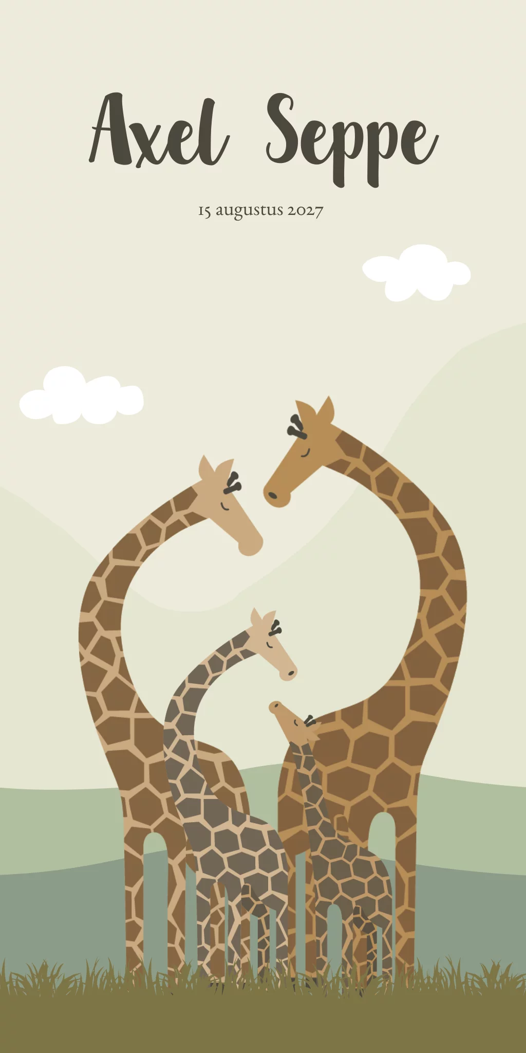 Een stoer, maar ook lief geboortekaartje met een familie van giraffen op de voorkant. Kaartje Axel is geheel naar wens aan te passen zodat het matcht met jullie gezinssituatie.