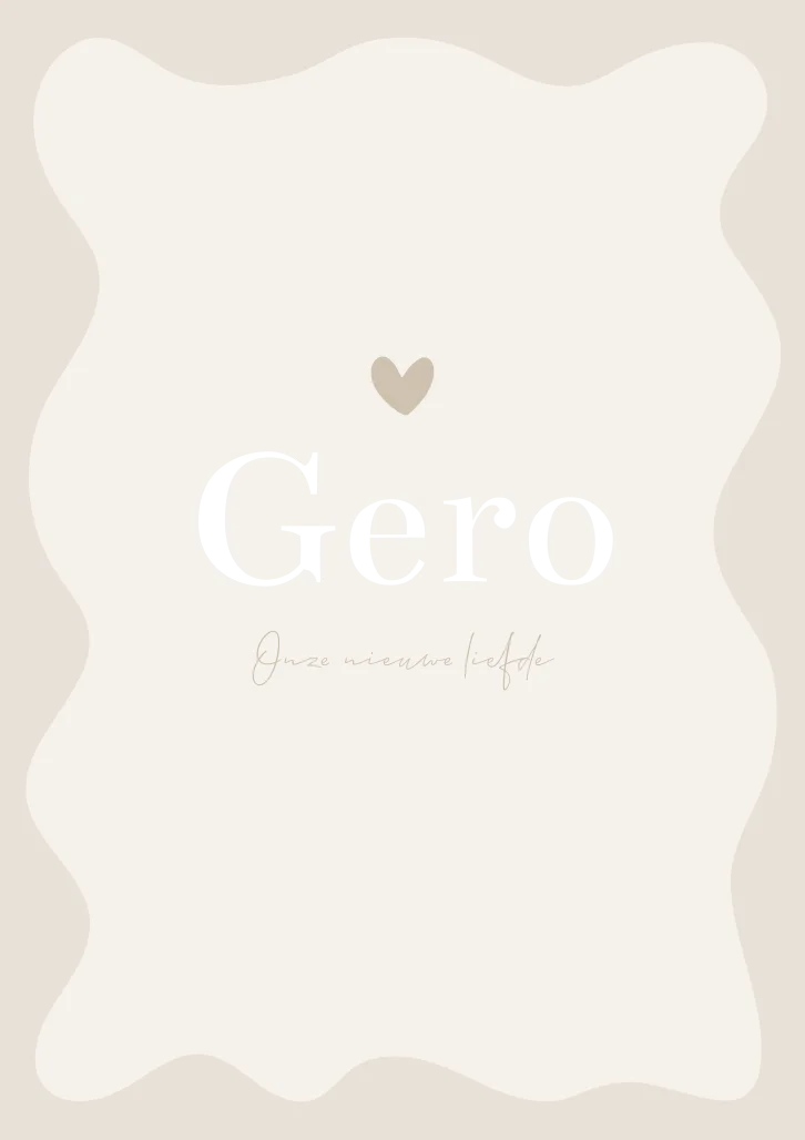 Dit naturel kleurige geboortekaartje Gero is helemaal de trend van dit moment! Het goudfolie en de bochtjes in het ontwerp maken de kaart extra uniek. Je past de kleuren gemakkelijk aan en ook het goudfolie kun je omzetten naar een andere (folie)kleur.