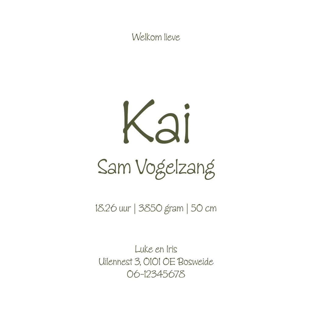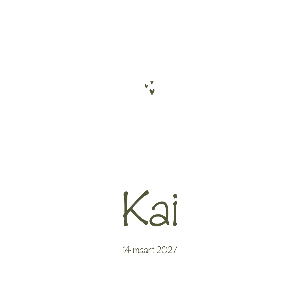 Een wit geboortekaartje met een dino-familie op de voorzijde in goudfolie. Kaartje Kai is zowel stoer als lief. Door de toevoeging van de hartjes wordt het een lief kaartje. Wil je liever andere dinosauriërs? Neem dan eens een kijkje tussen al onze verschillende illustraties.