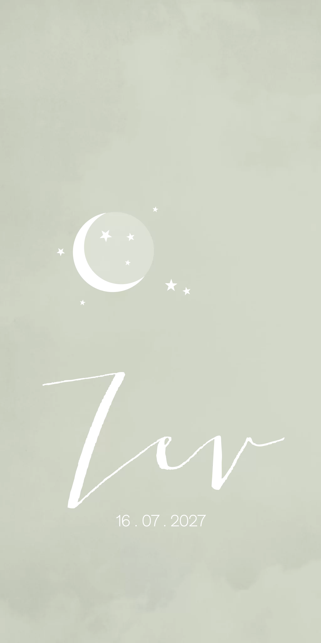 Hip geboortekaartje Zev in trendy gewolkt mint groene pastel kleur. Op de kaart is een maantje met sterretjes geplaatst die je in goudfolie kunt laten drukken, zo ook de naam. De kaart kun je zelf maken in onze editor!