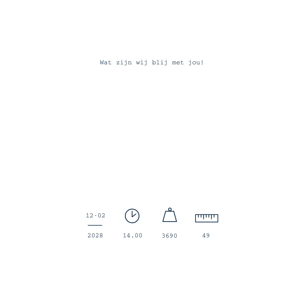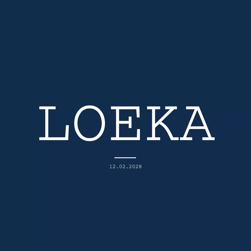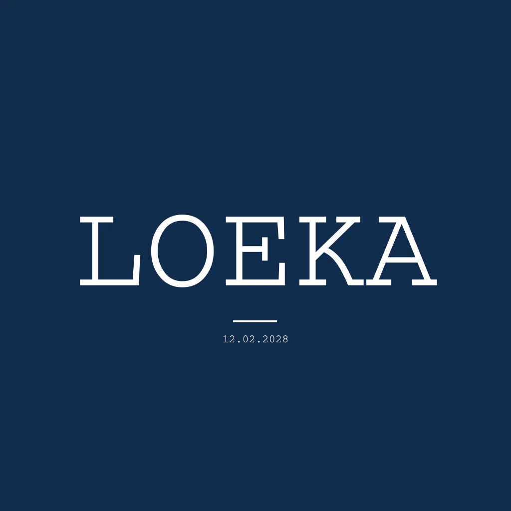 Een strak donkerblauw geboortekaartje met goudfolie letters. Het kaartje Loeka is krachtig in zijn eenvoud. Bekijk de verschillende opties in de editor. Kom je er niet uit? Neem dan gerust contact met ons op!