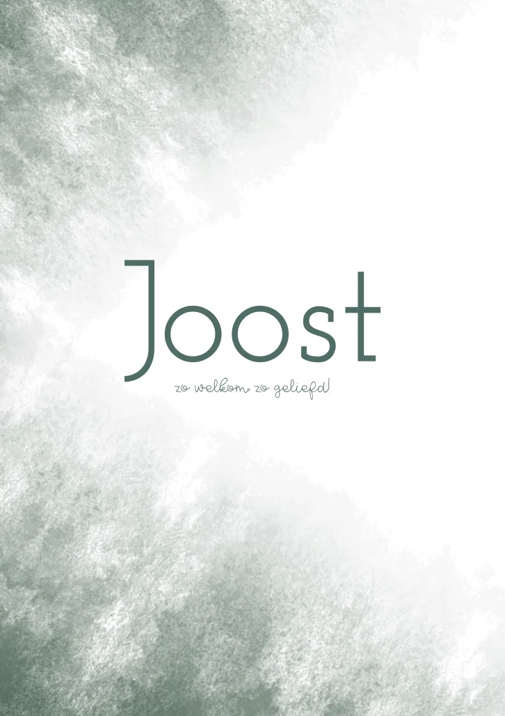 Een wit geboortekaartje met een groene fade op de achtergrond. Kaartje Joost is een simpel kaartje.