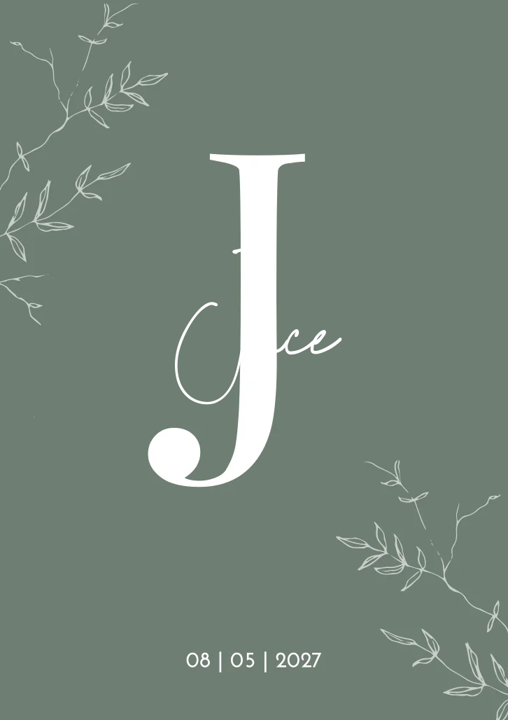 Een emerald groen geboortekaartje met een grote letter als initiaal op de kaart. De speelse takjes maken het kaartje net wat sierlijker. Kaartje Jace is een modern en strakke kaart. Door de naam in goudfolie te drukken springt deze er extra uit! Wil je hem liever aanpassen qua kleur of opmaak? Dit doe je binnen enkele minuten in onze editor!