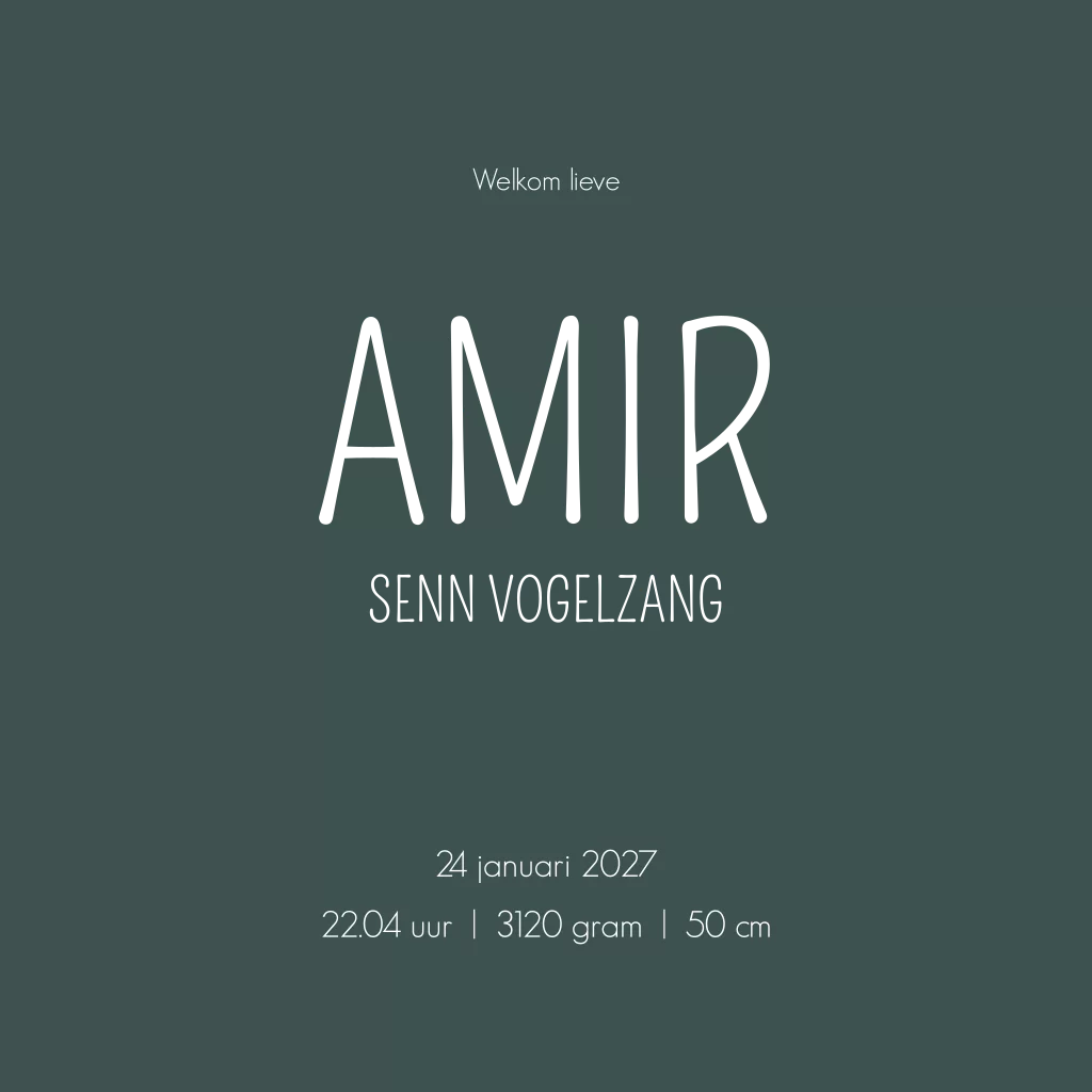 Geboortekaartje Amir is een stoer maar ook lief geboortekaartje met de hartjes in goudfolie. Bekijk alle opties in de editor.