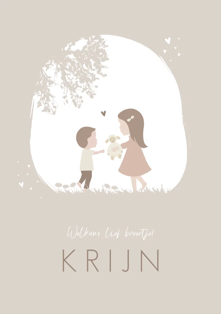 Het Uilennestje x Happy Horse. Een lief geïllustreerd geboortekaartje van een grote zus met broertje met als toevoeging een Happy Horse knuffel. Wil je liever een andere knuffel of andere kindjes op de kaartje Krijn? Neem dan een kijkje in onze editor voor de vele opties!