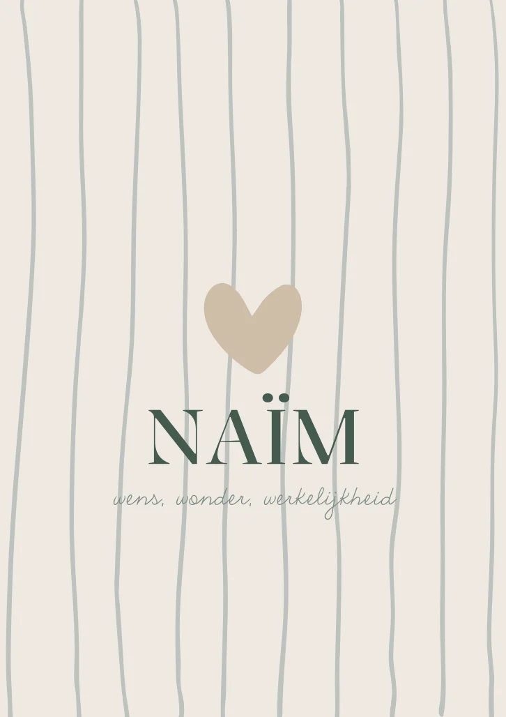 Een prachtig zacht groen met donkergroengestreept baby kaartje Naïm met een hartje.