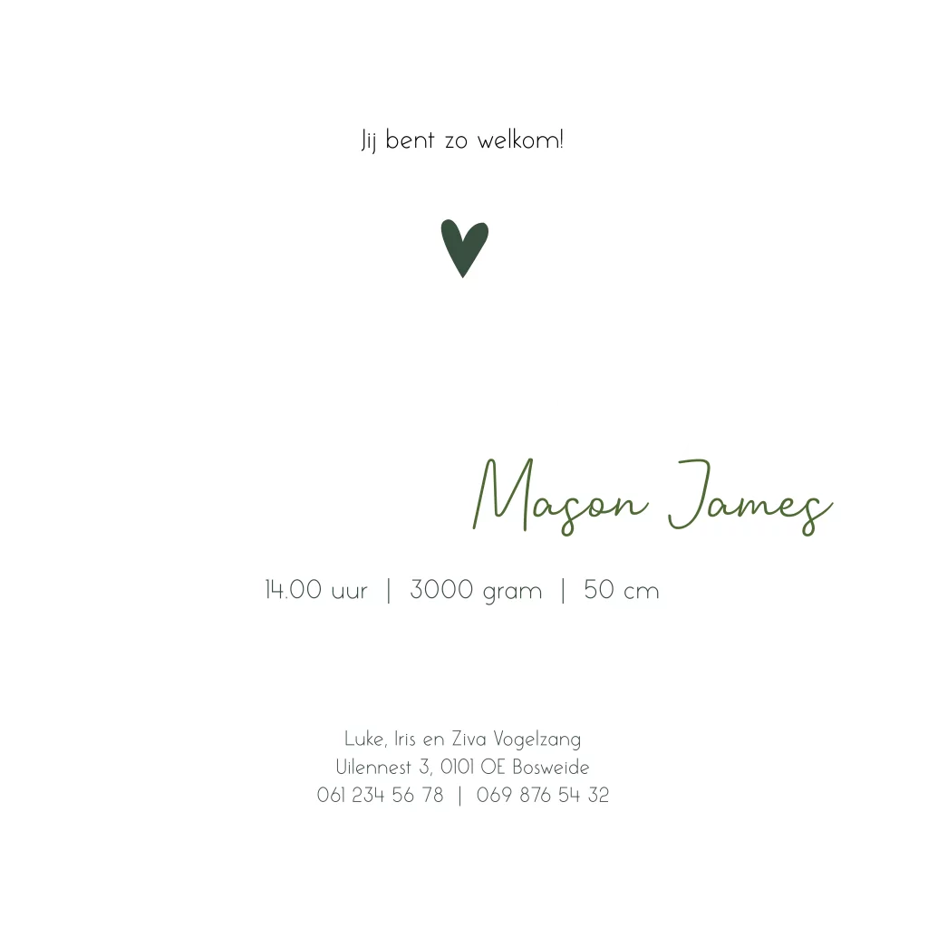 Geboortekaartje Jongen hartjes Groen Goudfolie