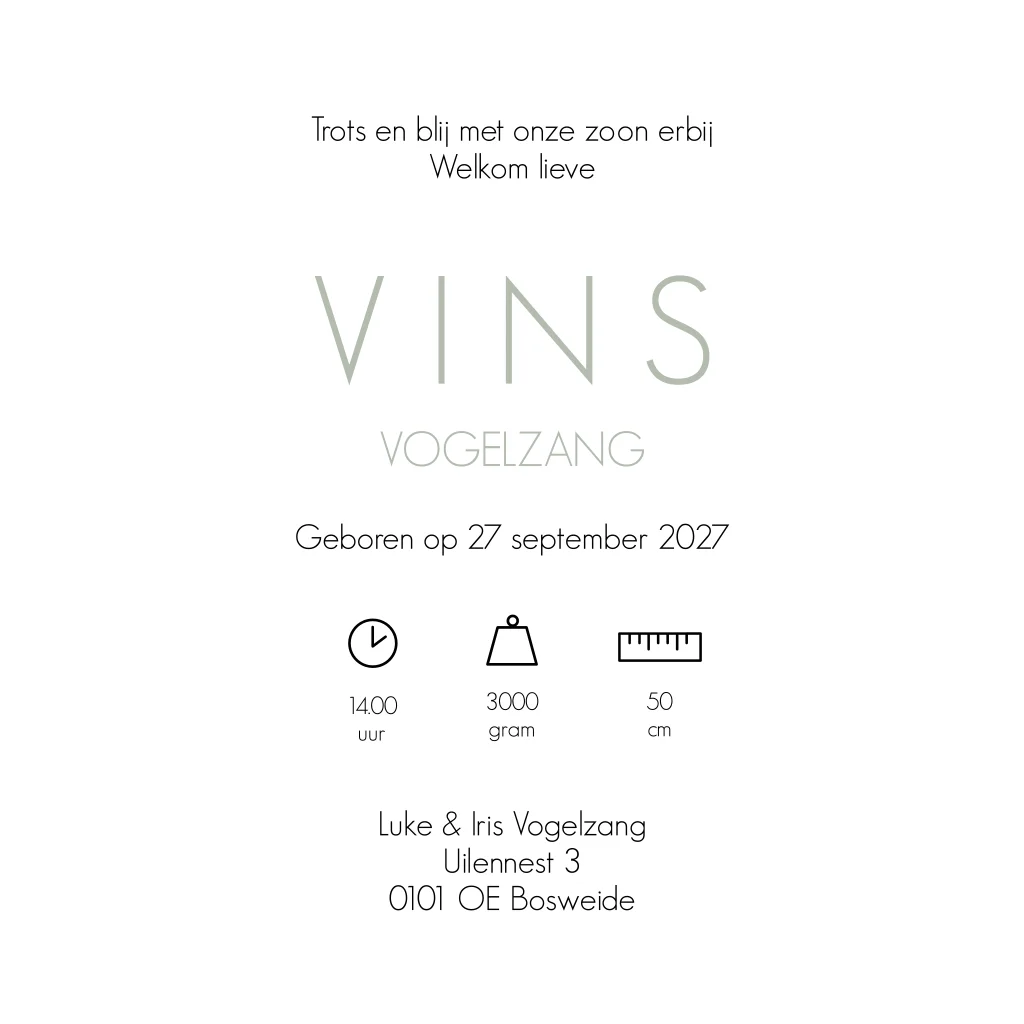 Oud groene kaart met grote zilverkleurige letter. Geboortekaartjes Vins is een initiaalkaart waarbij je de initiaal eenvoudig kunt aanpassen in de editor.