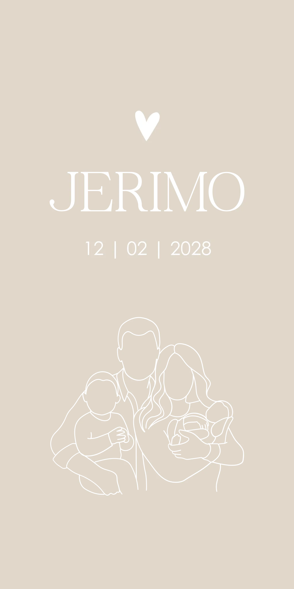 Een stoer en stijlvol bruin geboortekaartje met een lijntekening van een vader, moeder, grote broer en baby broertje. Kaartje Jerimo is een simplistisch maar lief kaartje. Heb je een andere gezinssituatie? Pas de illustratie dan gemakkelijk zelf aan in onze editor of mail ons voor een illustratie op maat.