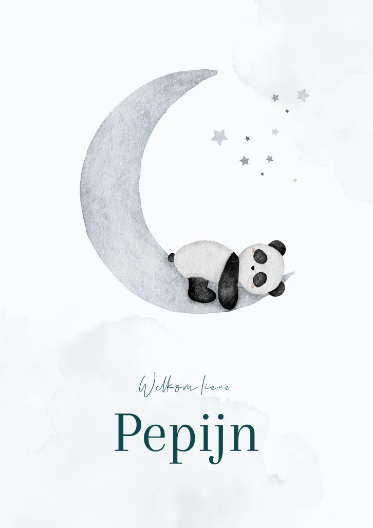 Geboortekaartje Jongen Maan Pandabeer Slapen