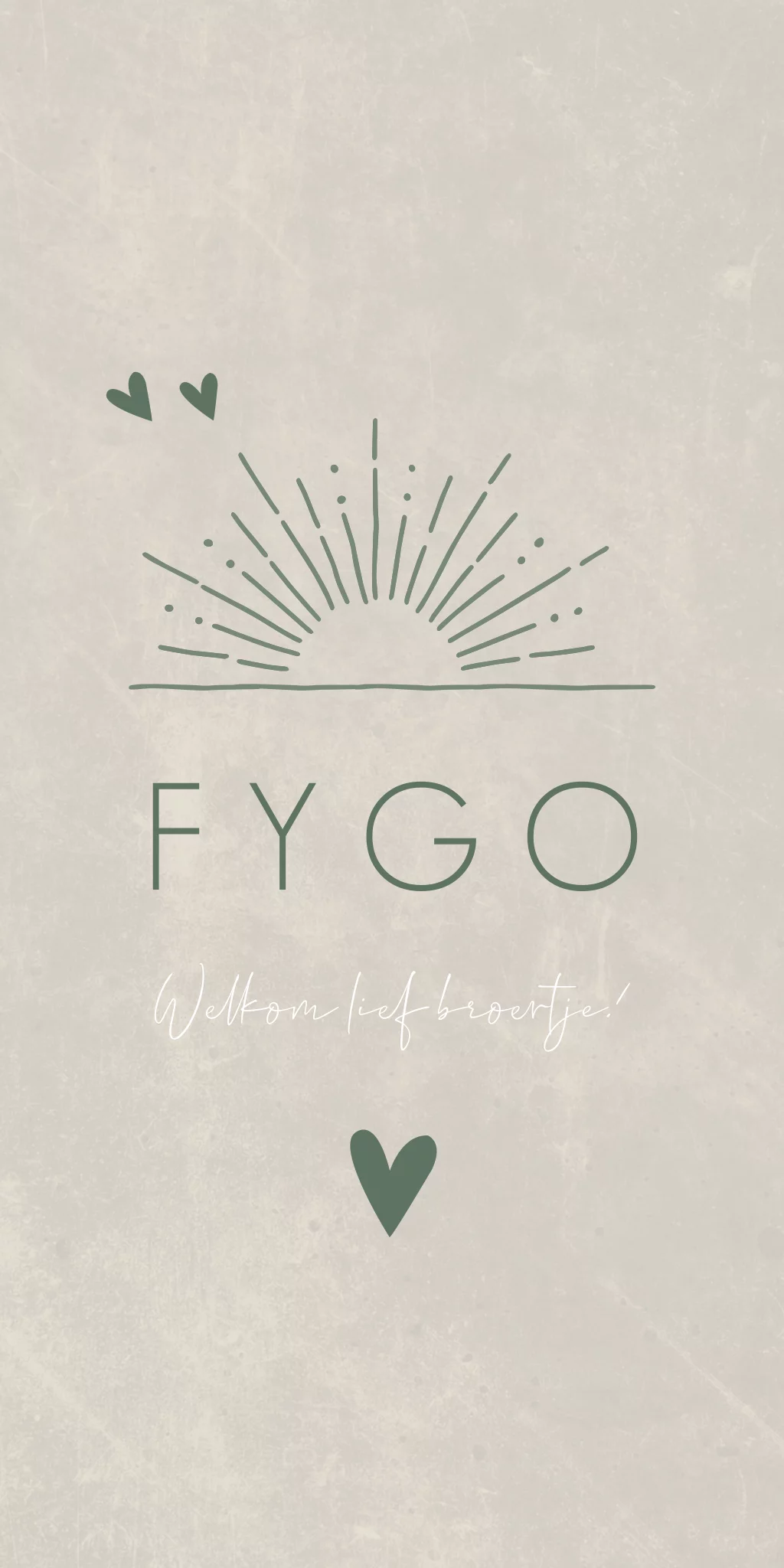 Een beige/ taupe kleurig babykaartje met een lijntekening van een donkergroene zon, gecombineerd met hartjes. Je past dit kaartje Fygo zelf aan in onze editor en je kunt er een proefdruk van bestellen.