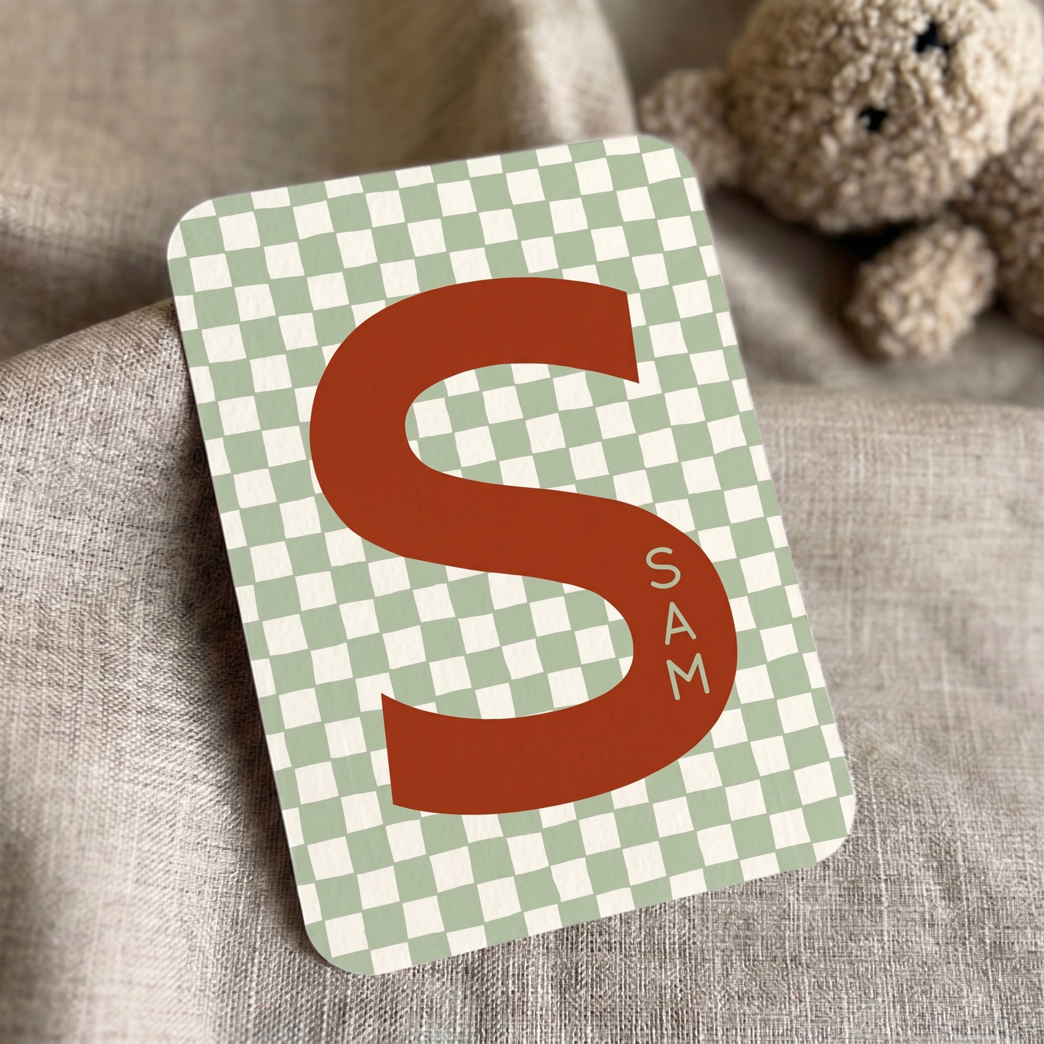 Kaartje Sam is een stoer, geblokt geboortekaartje met initiaal. De letter pas je gemakkelijk aan naar de eerste letter van de naam van jouw kindje. Ook de kleuren zijn gemakkelijk te bewerken.