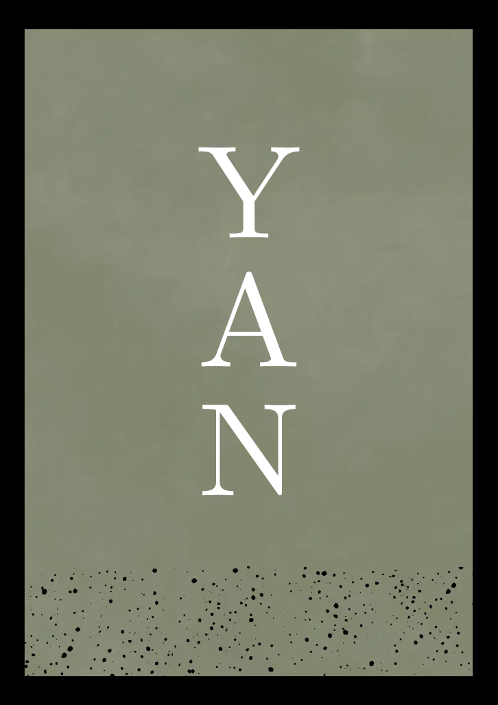 Een modern en hip groen geboortekaartje. Kaartje Yan is extra bijzonder doordat de naam verticaal op de kaart staat. Door de zwarte rand krijgt het kaartje een stoere uitstraling. De goudfolie maakt het kaartje weer chique.