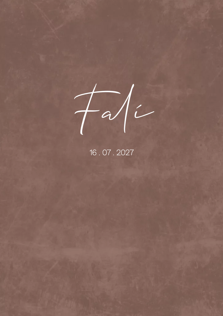 Tijdloos en eenvoudig modern ontwerp geboortekaartje Falí in een bruine kleur met velvetlook. Perfect voor de herfst. De goudfolie details maken het kaartje heel speciaal en luxe. Je kunt de kaart met je eigen gegevens opmaken in de editor!