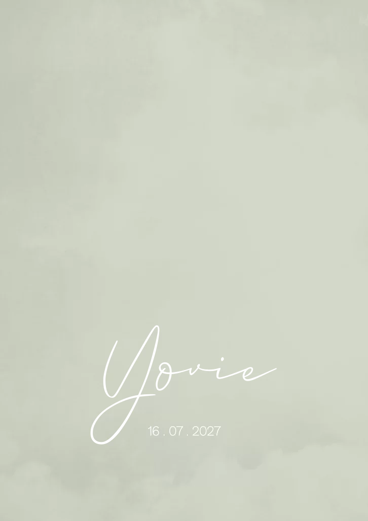 Tijdloos en eenvoudig modern ontwerp geboortekaartje Yovi in een lichte mint groene kleur met velvetlook. De goudfolie details maken het kaartje heel speciaal en luxe. Je kunt de kaart met je eigen gegevens opmaken in de editor!