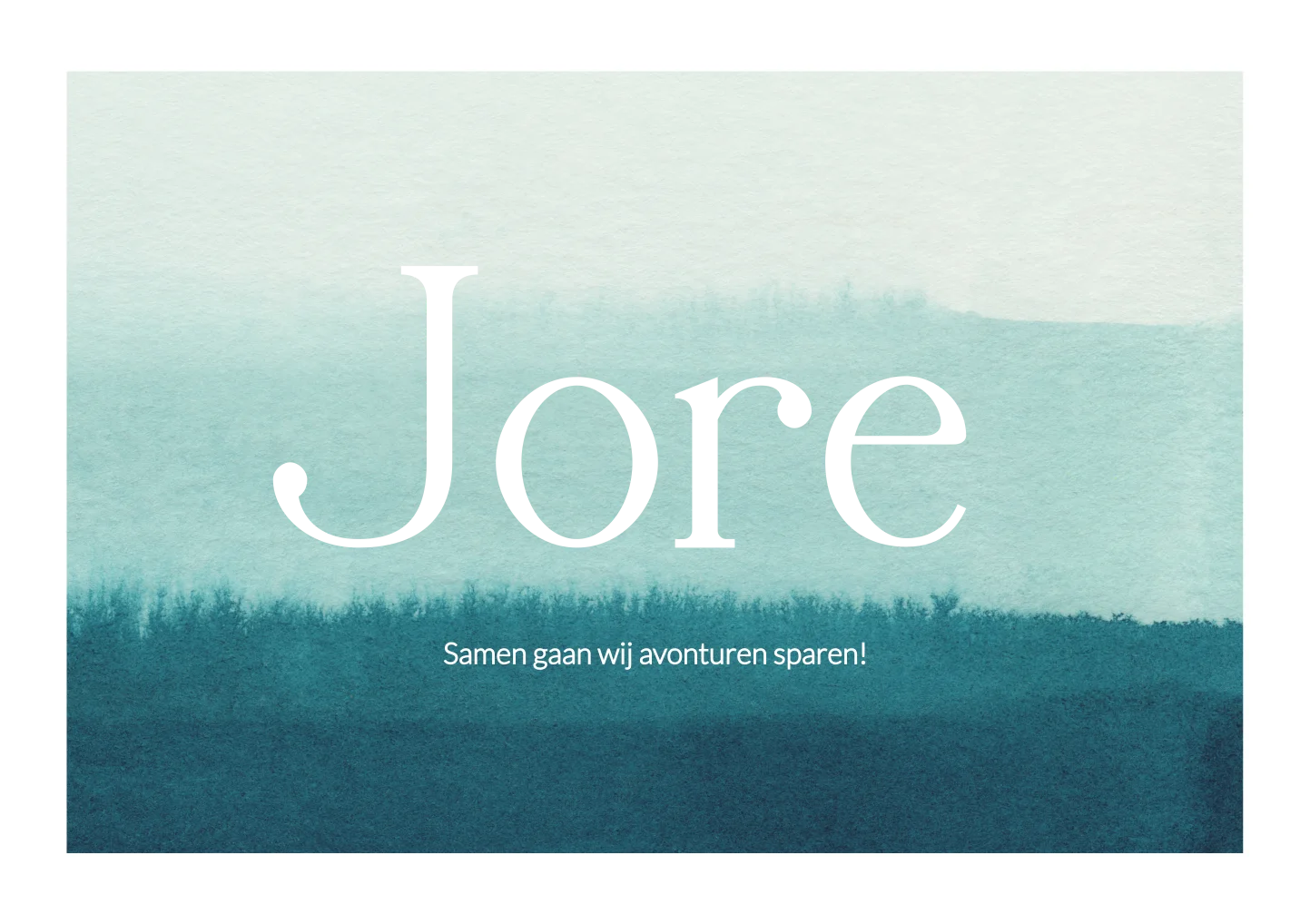 Geboortekaartje met waterverf in de kleuren oceaan blauw, donkerblauw, licht blauw en wit. Kaartje More is extra mooi als je deze laat drukken met goudfolie. Wil je dit ontwerp liever in een ander formaat? Dit kun je gemakkelijk en snel doen in onze editor!