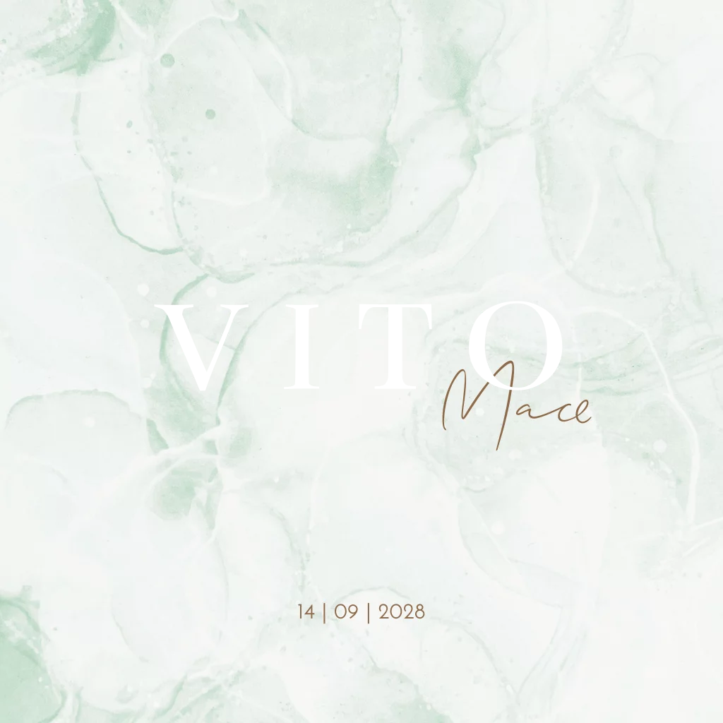 Een zacht lief en tijdloos licht roze groen geboortekaartje Vito. De achtergrond bevat een lichte watercolor look wat het kaartje heel zacht maakt. De letters kunnen staan in goudfolie wat het kaartje extra speciaal maakt. Je past het kaartje eenvoudig en snel aan, in onze online editor.
