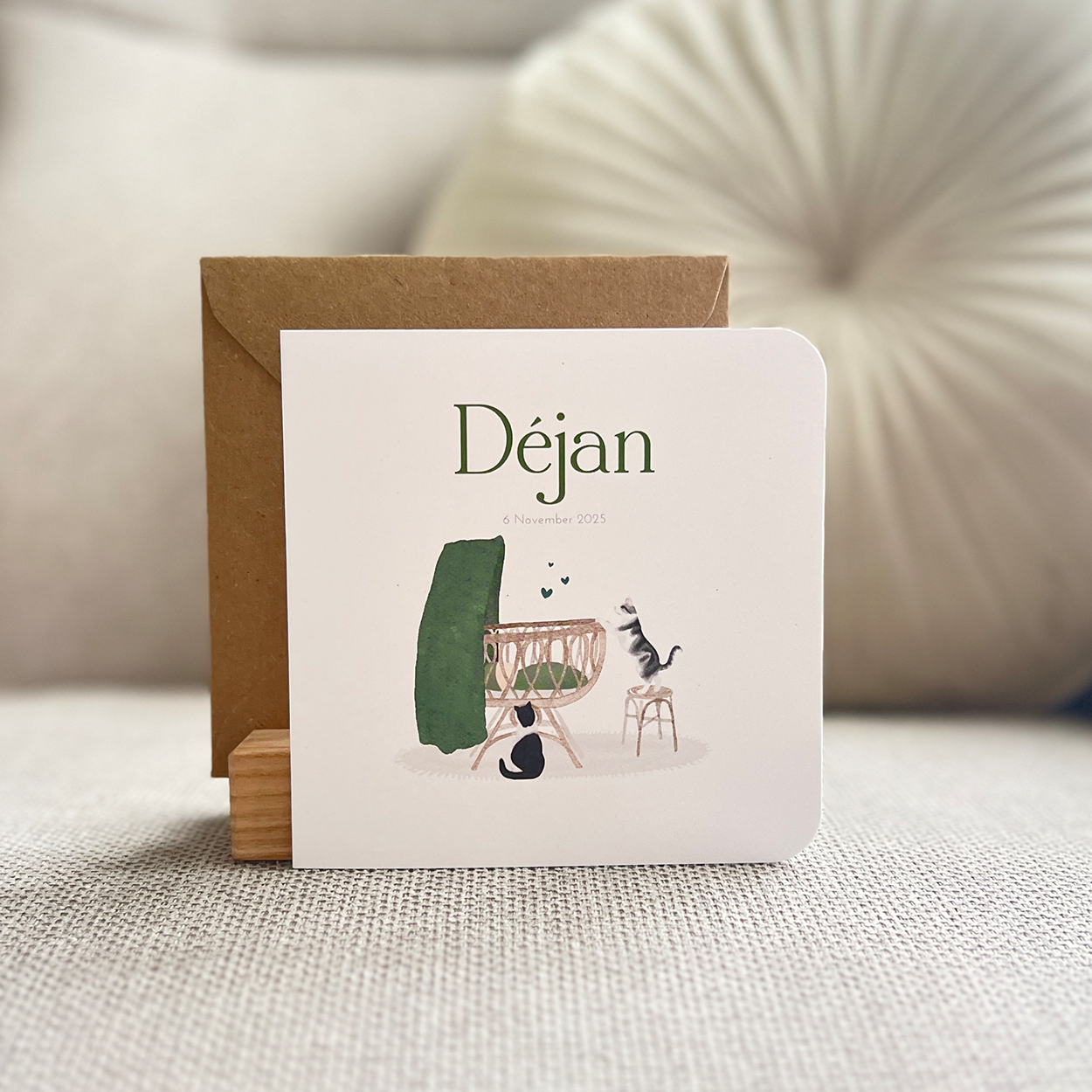 Geboortekaartje Jongen Wiegje Poesje Kat