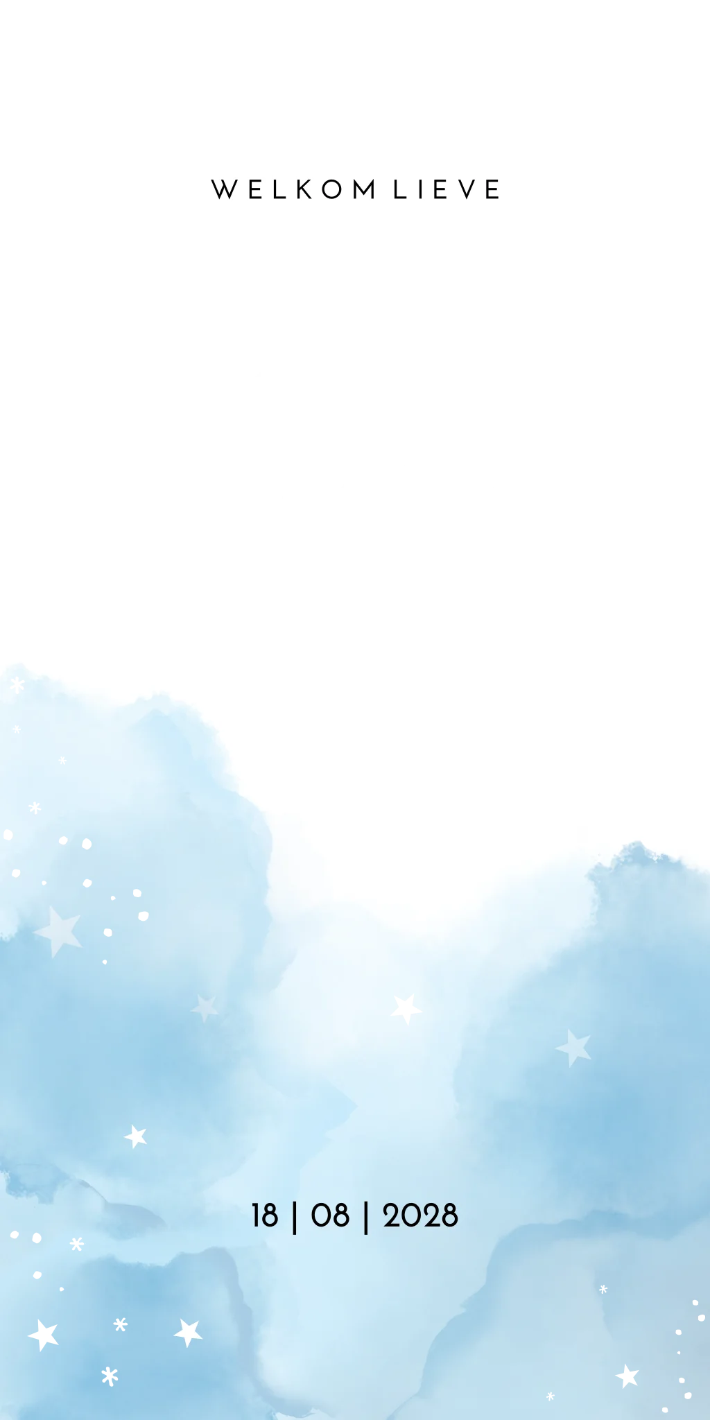 Een baby blauw gewolkt geboortekaartje met een allemaal sterretjes in wit en goudfolie. Kaartje Kaya is een romantisch en stoer kaartje met een trendy design.
