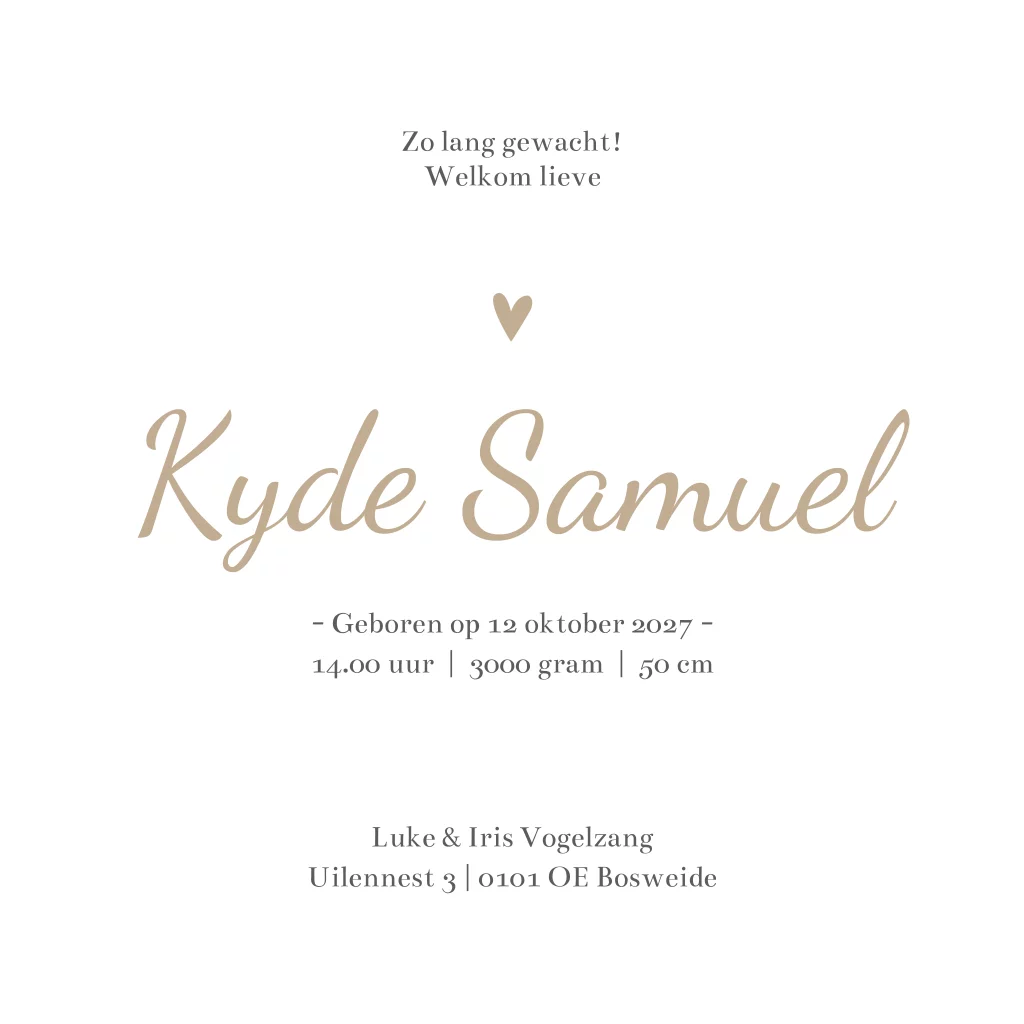 Neutraal botanisch babykaartje met witte takjes. Pas geboortekaartje kyde naar eigen smaak aan in de editor.