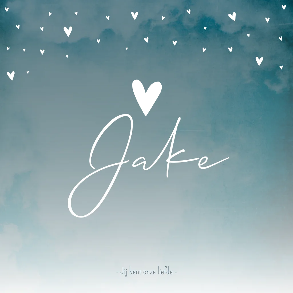 Geboortekaartje romantisch blauw gewolkt hartjes