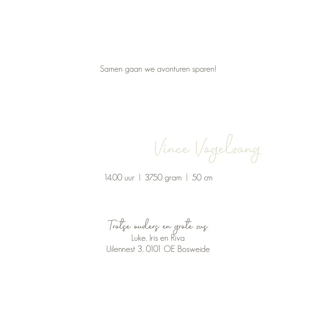 Deze kaart is prachtig met koperfolie bijvoorbeeld. Maar je past dit ontwerp van de kaart helemaal zelf aan binnen no time. Zo kun je de kleuren, lettertypes en compositie van dit ontwerp aanpassen, maar je kunt ook voor een ander illustratie kiezen wat past bij jouw gezinssituatie.