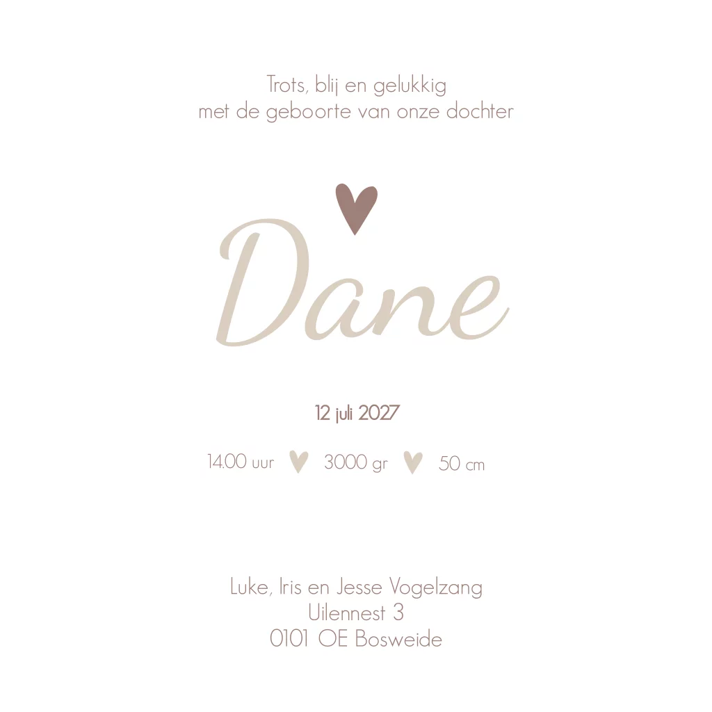 Geboortekaart meisje neutraal beige hartje